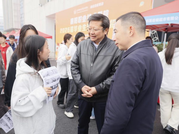 10月30日上午,由我校与襄阳市人力资源和社会保障局共同主办的“湖北百校联动”襄阳职业技术学院2026届毕业生秋季校园招聘会在智造中心A栋广场顺利举行。180余家用人单位携上万个岗位来校揽才,覆盖教育、装备制造、新能源汽车、信息技术等多个领域。